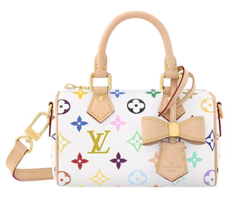 The Monogram Speedy 25, when updated with Murakami’s colorful touches, is a fantastic example of how the collaboration transformed classic LV bags. The Speedy 25 is smaller than the Speedy 30, which gives it a more compact and portable feel while still carrying the same bold artistic design.