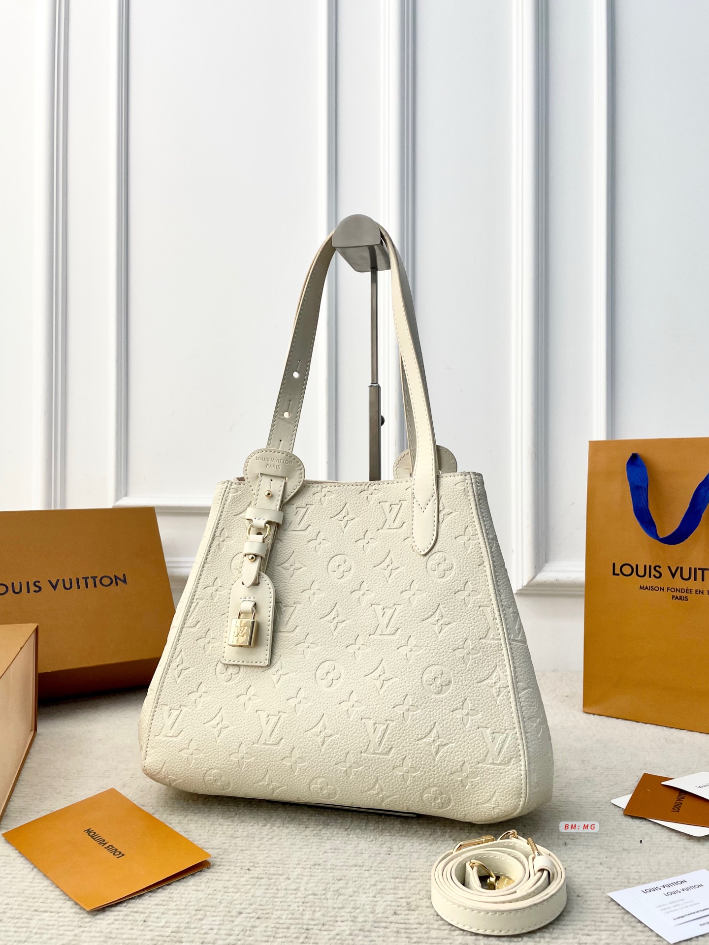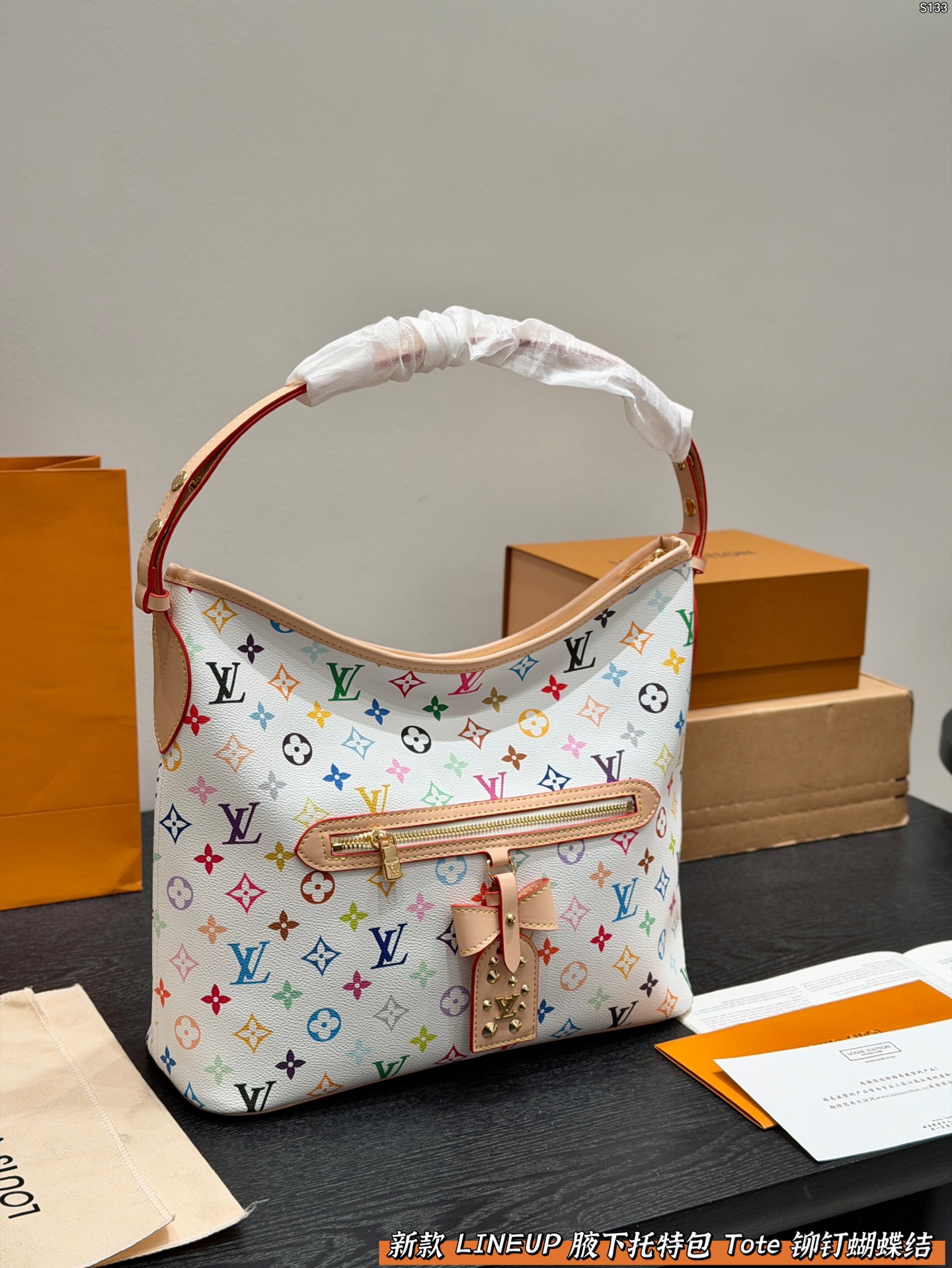 LV white tricolor LINEUP shopping bag
