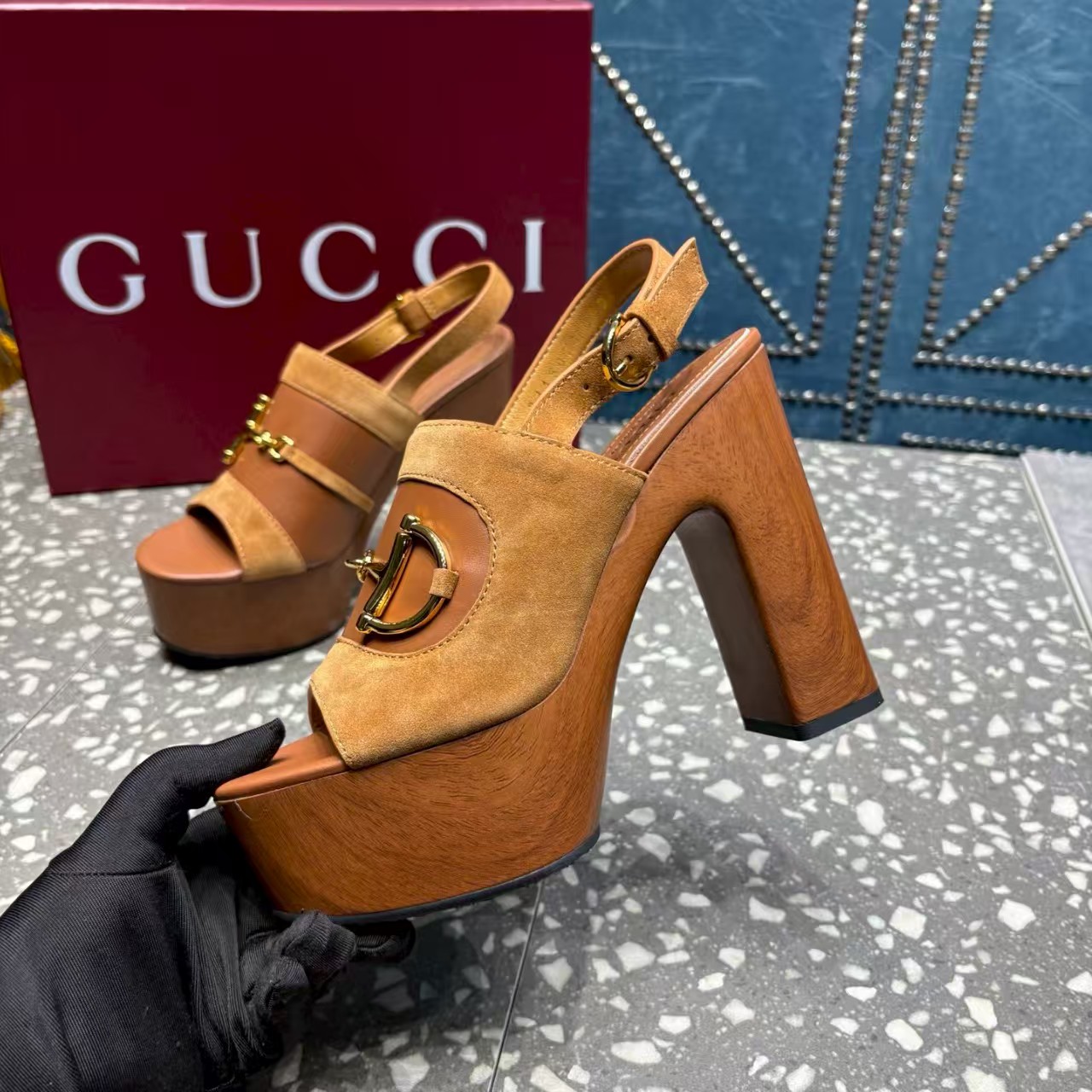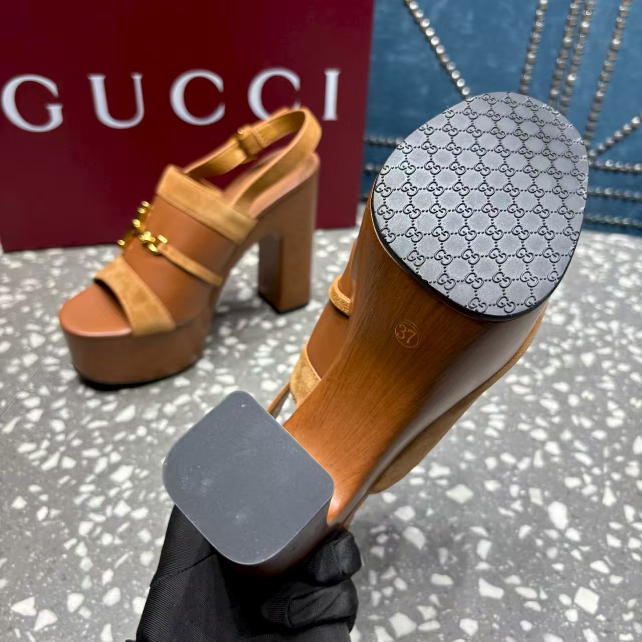 Gucci D-shaped buckle waterproof platform sandals