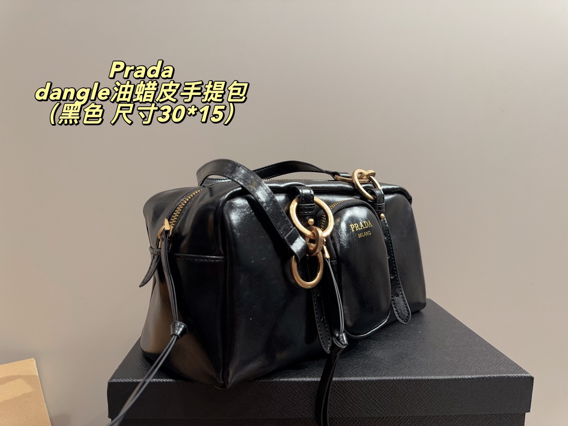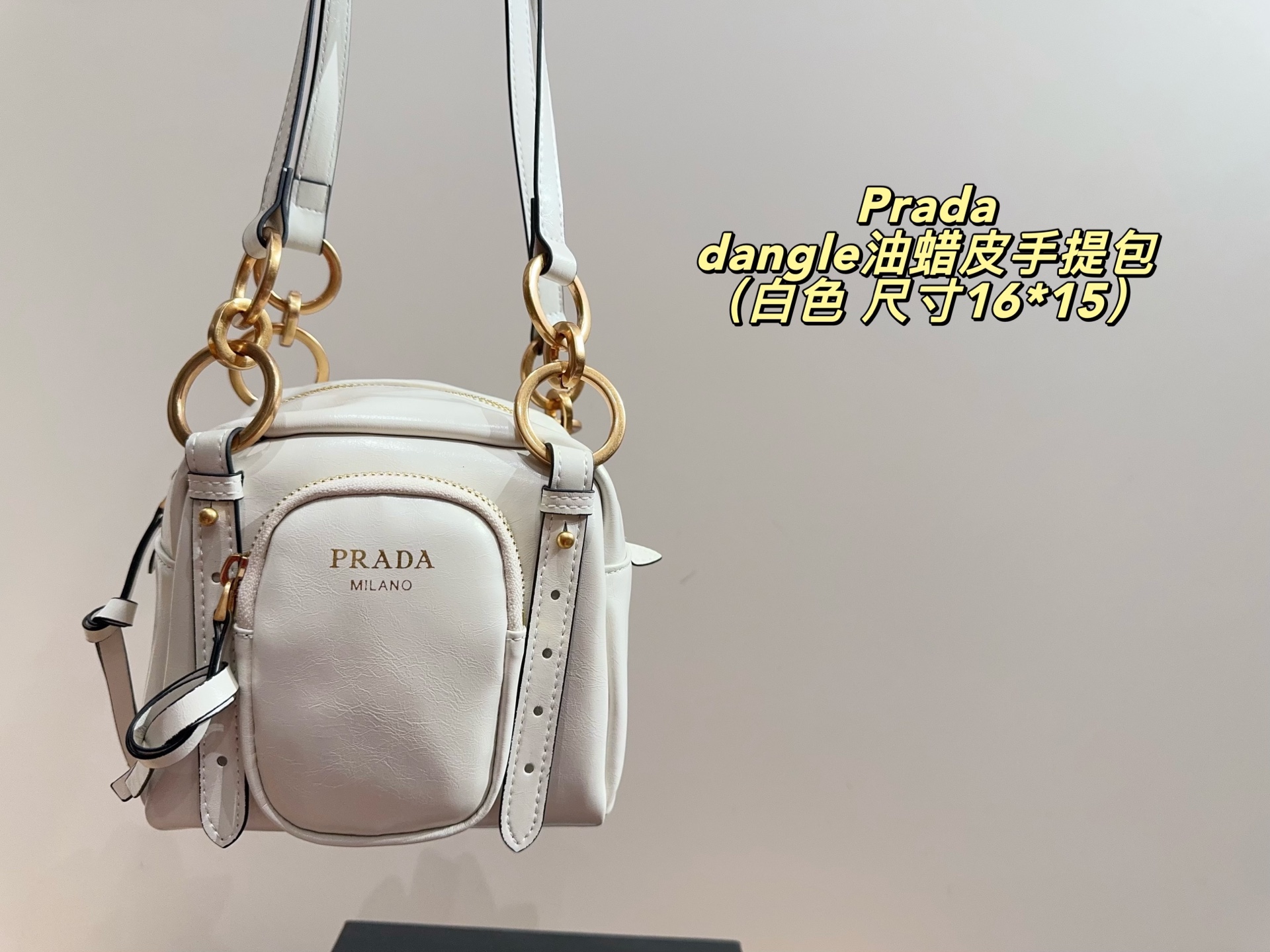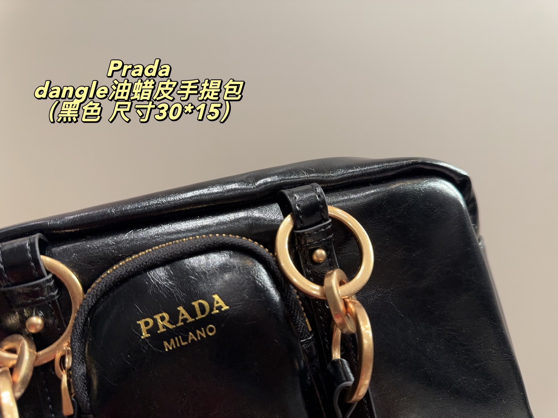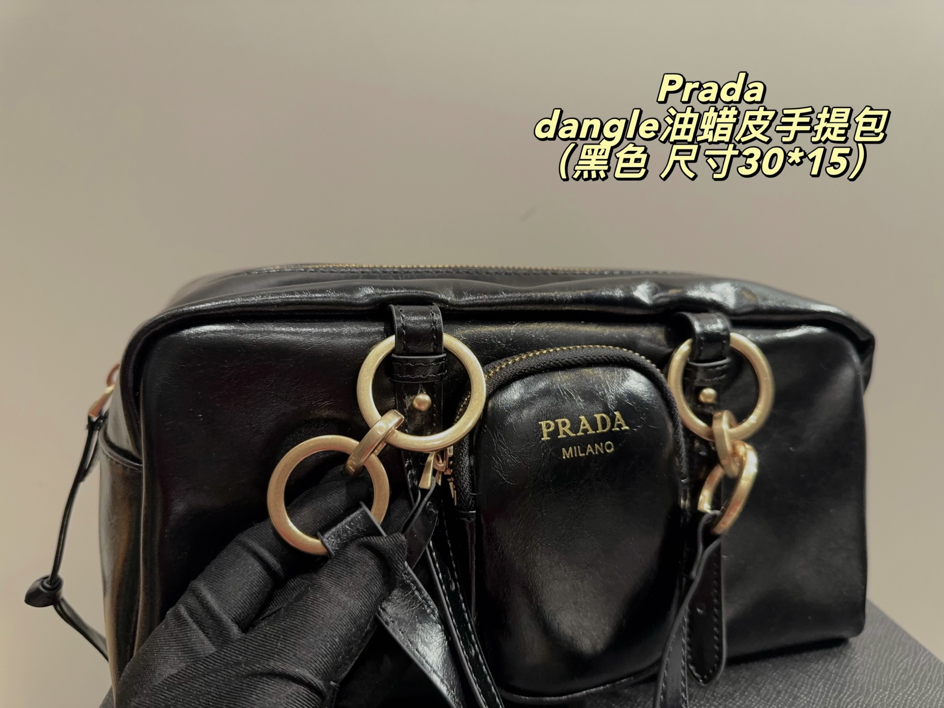 Prada dangle waxed leather handbag