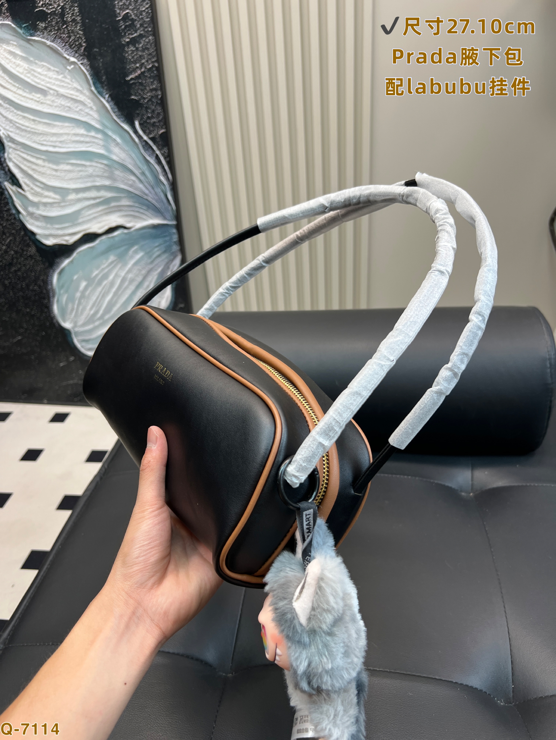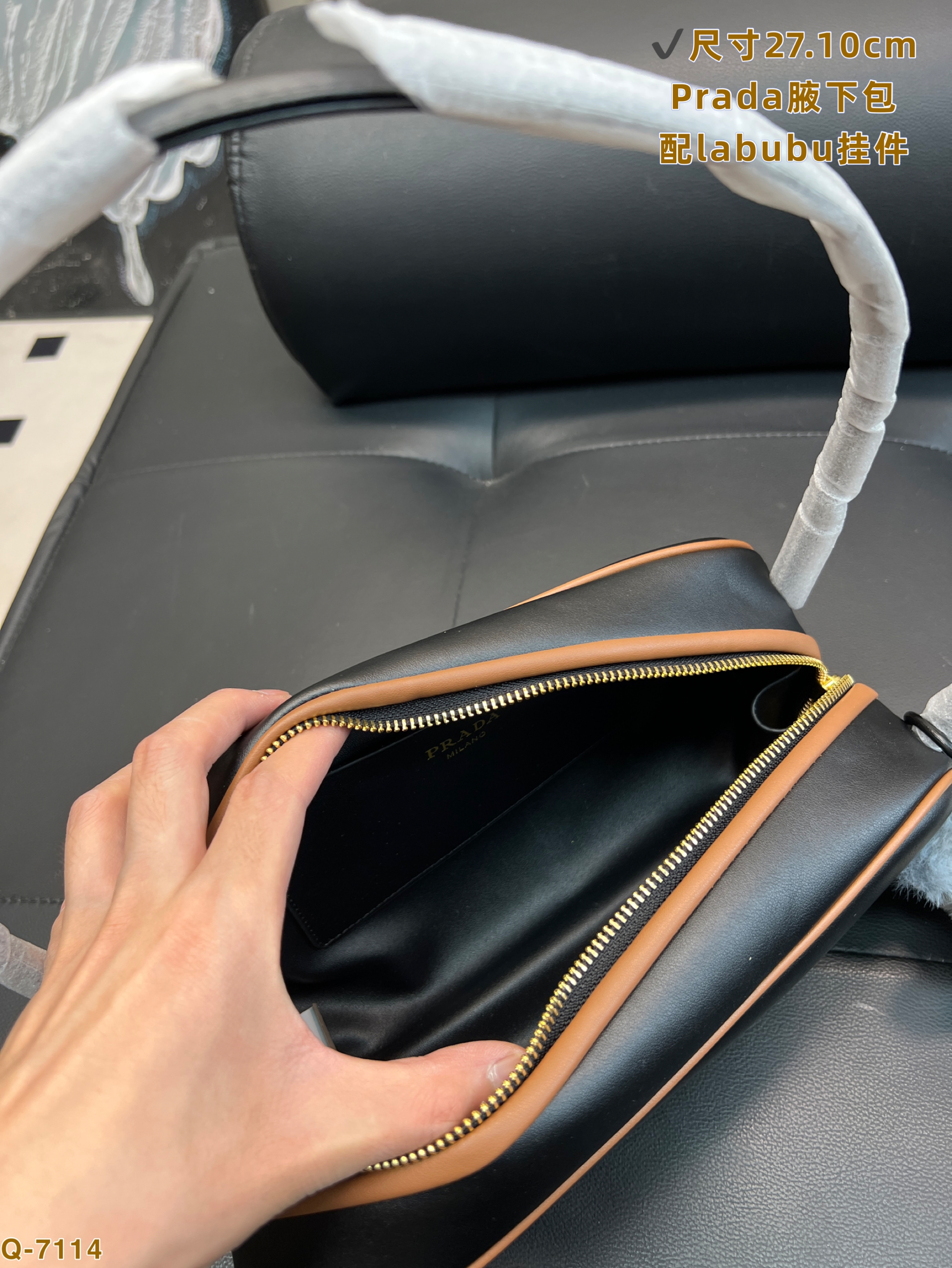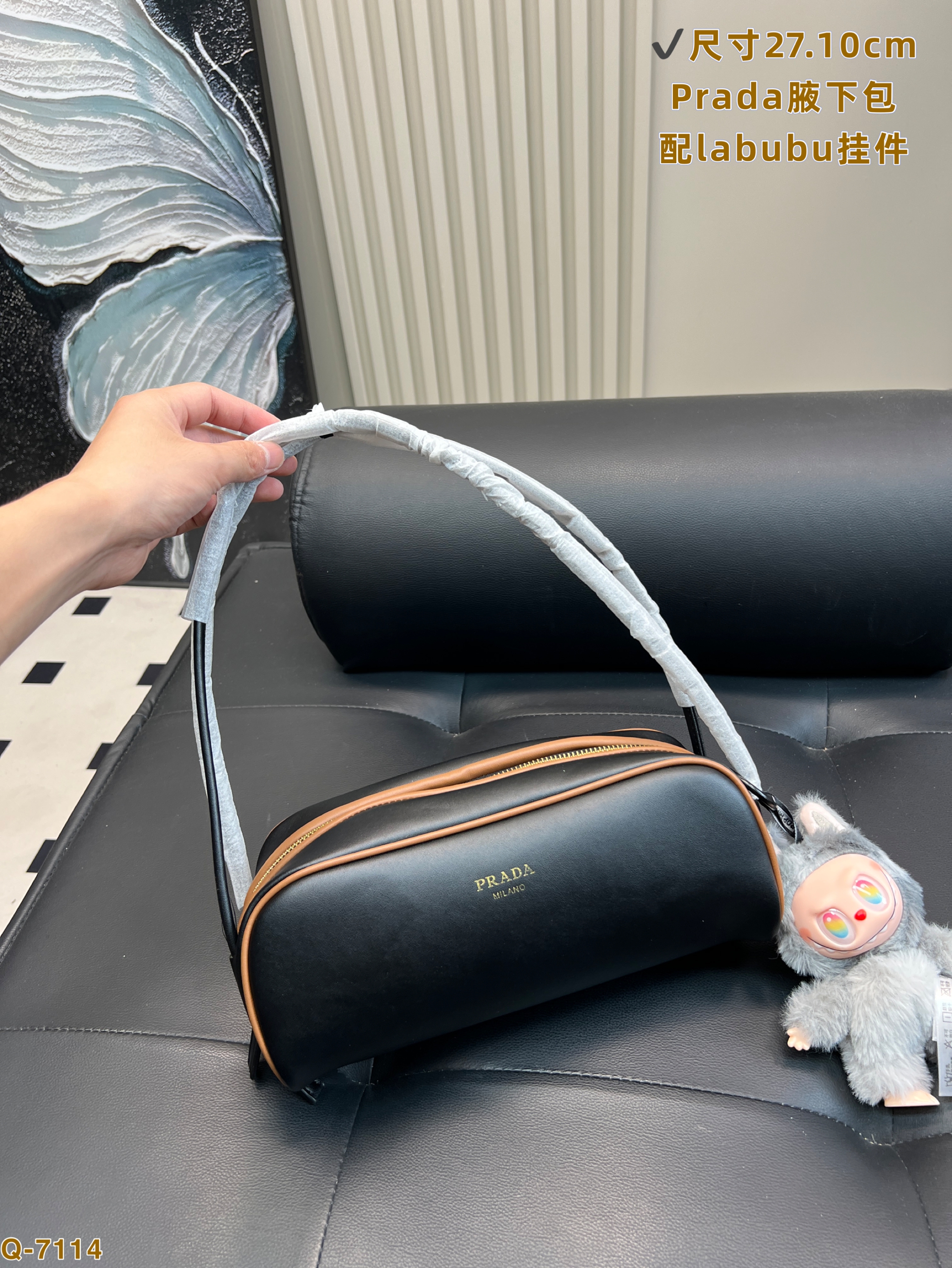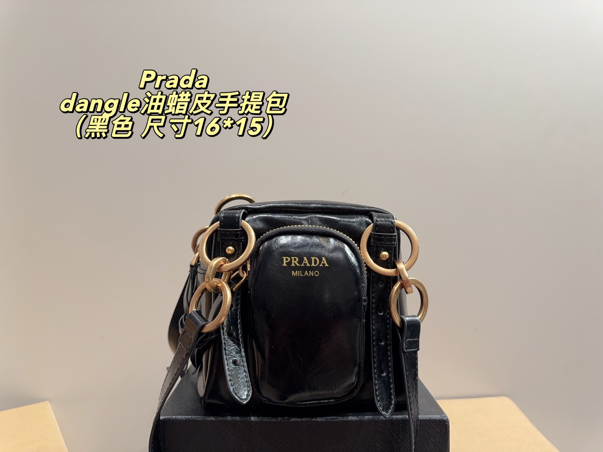 Prada dangle waxed leather handbag