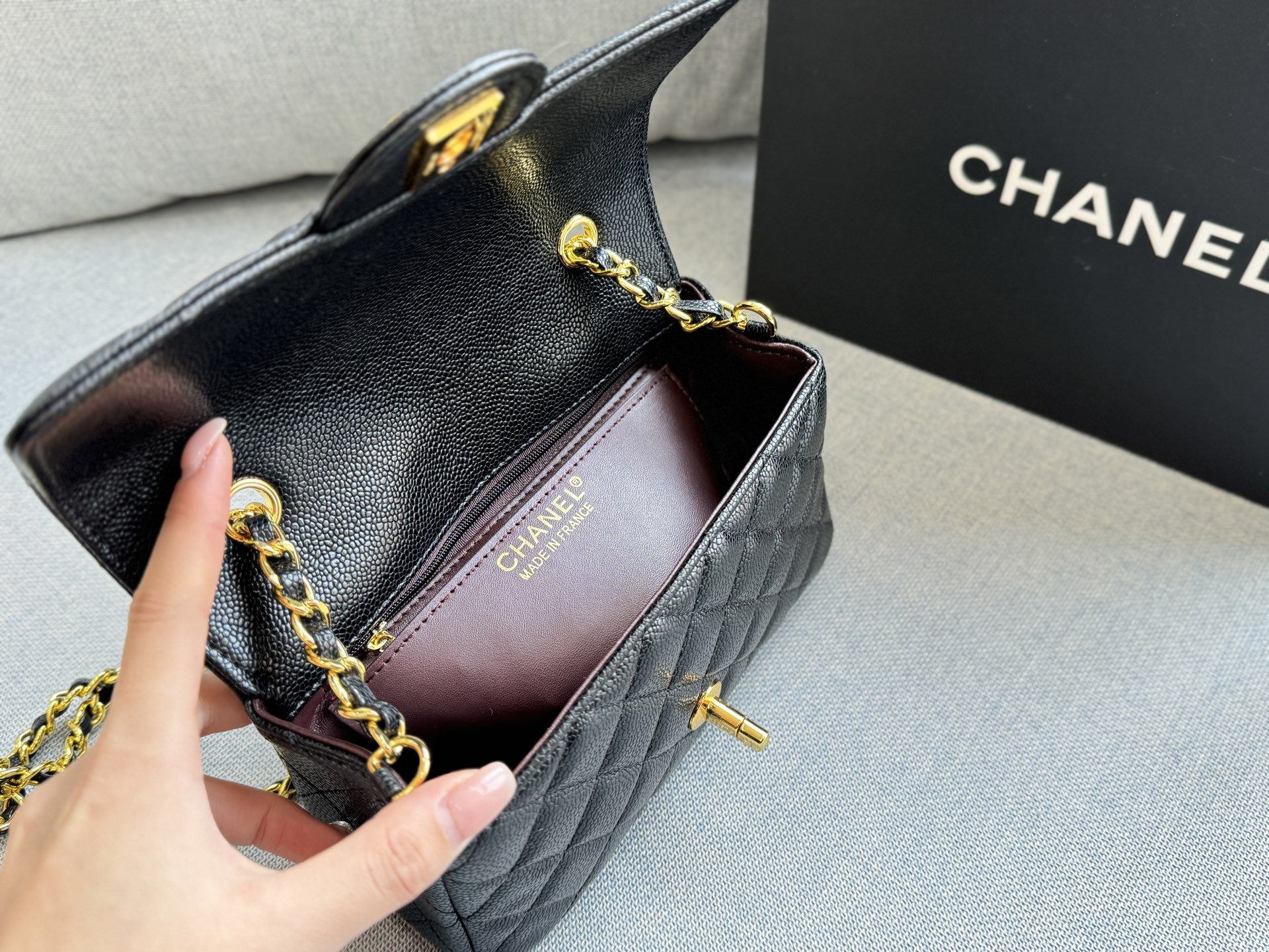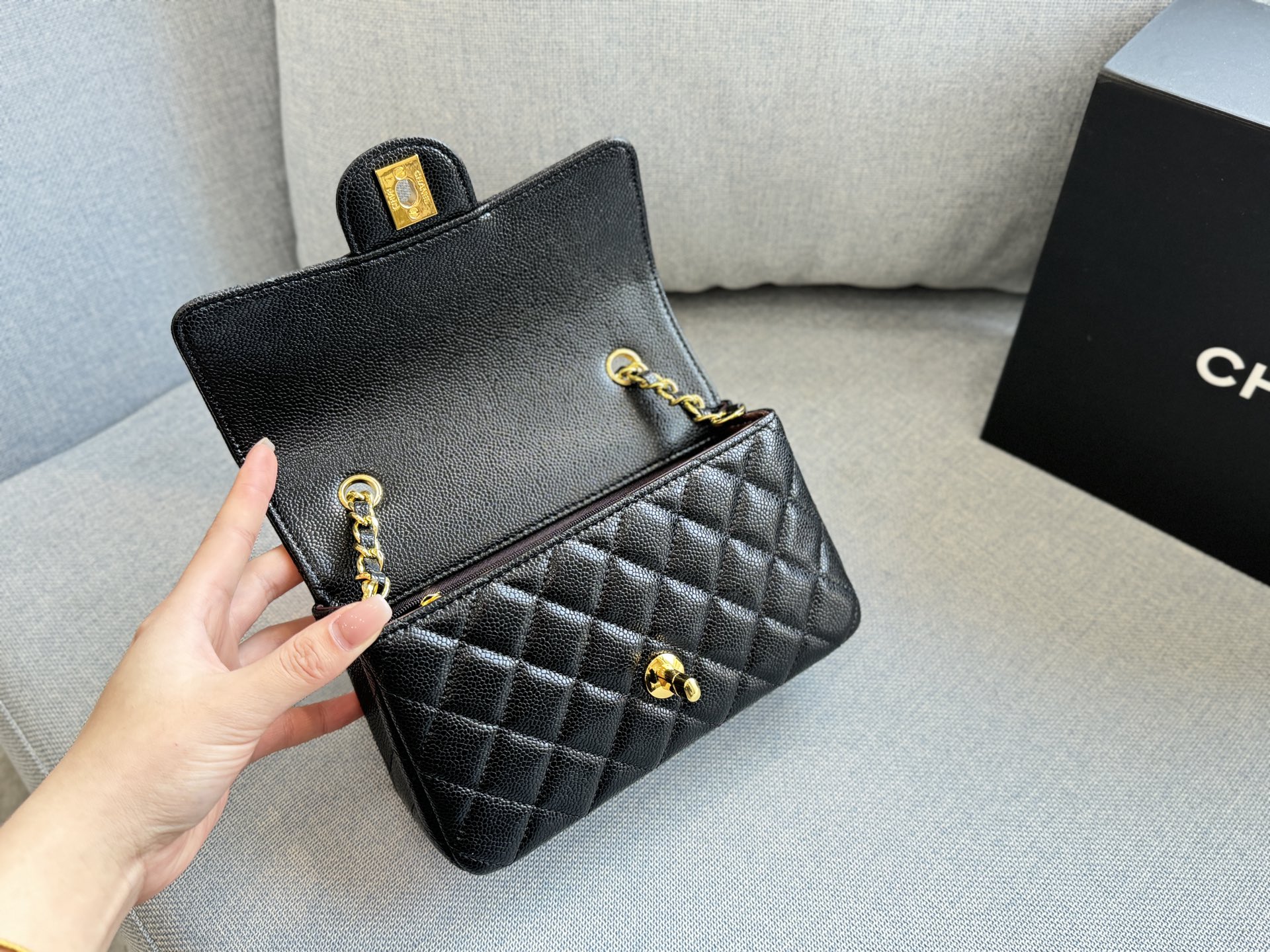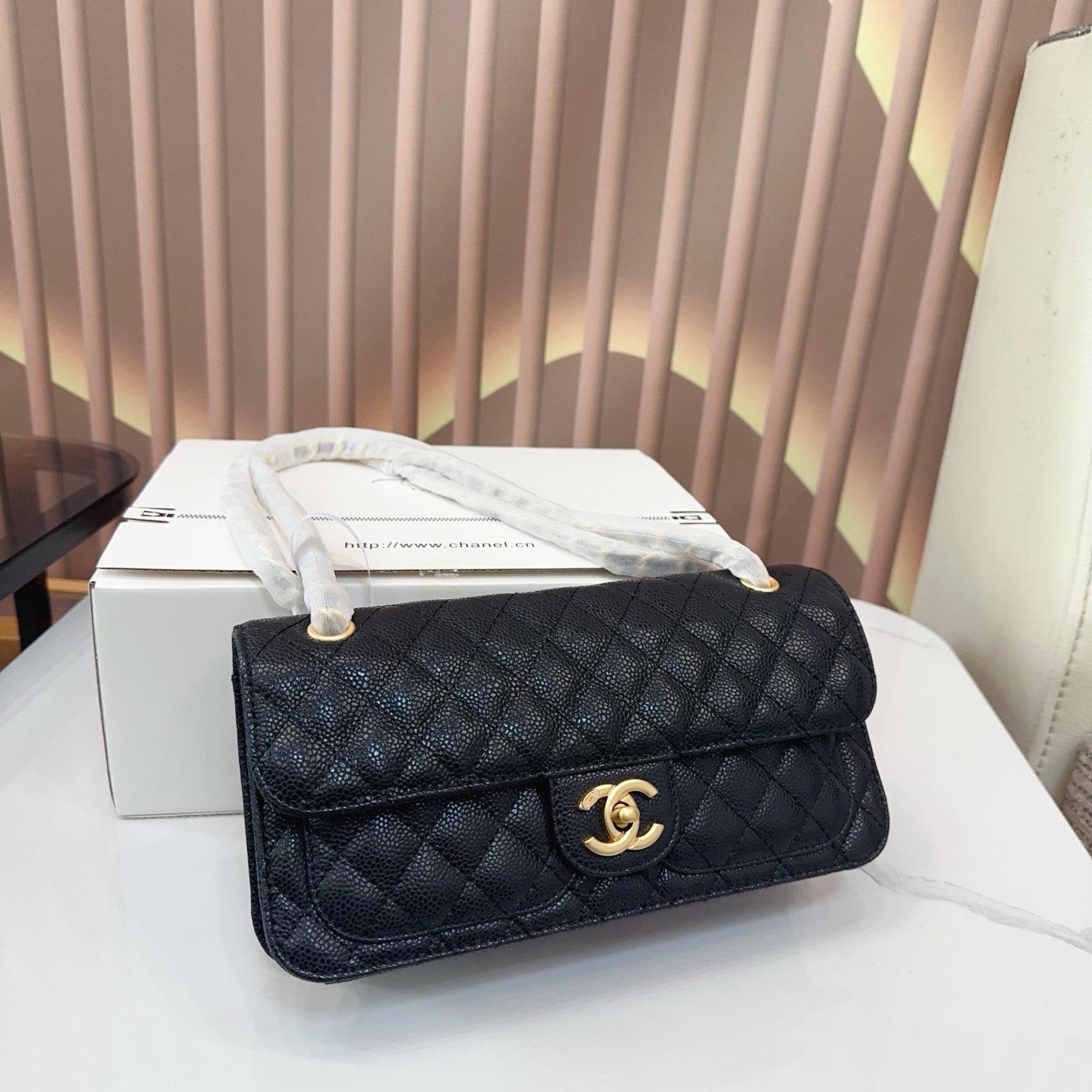 CHANEL Caviar Square Chain Bag