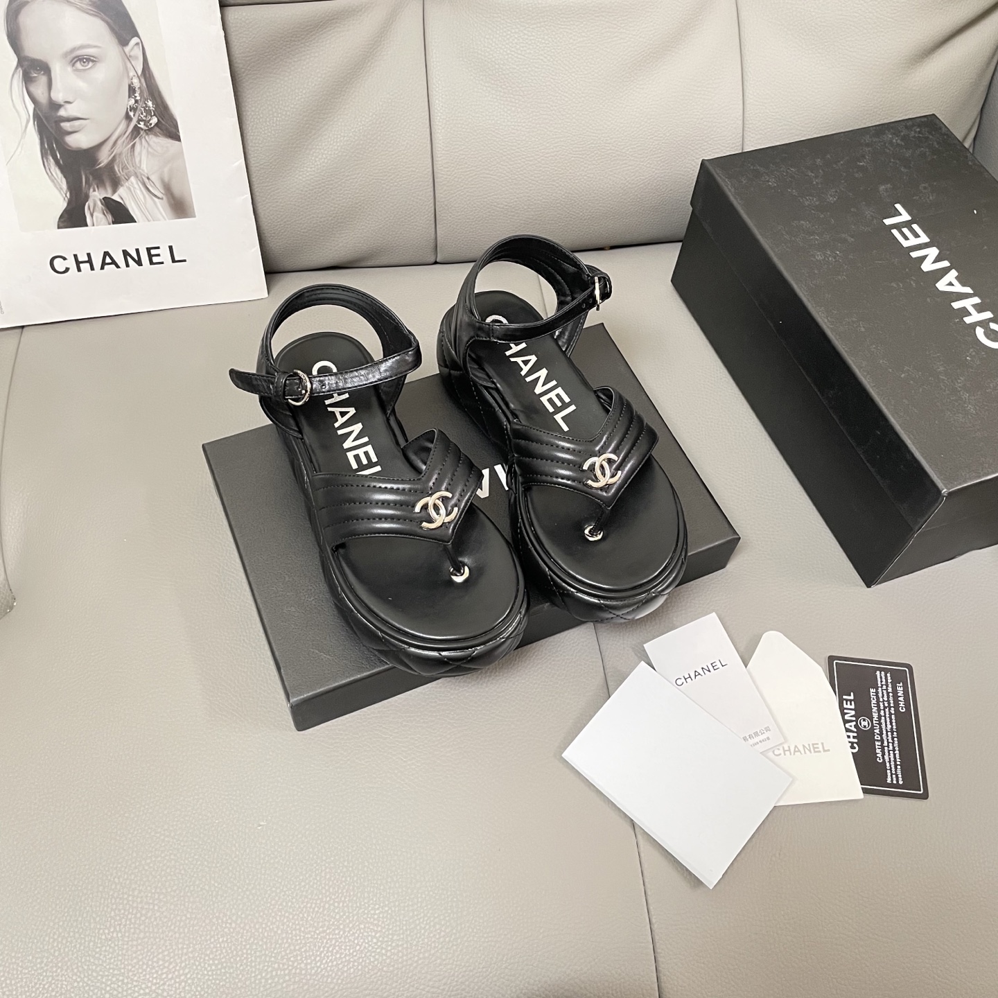 Chanel 25SS C buckle thick-soled flip-flops