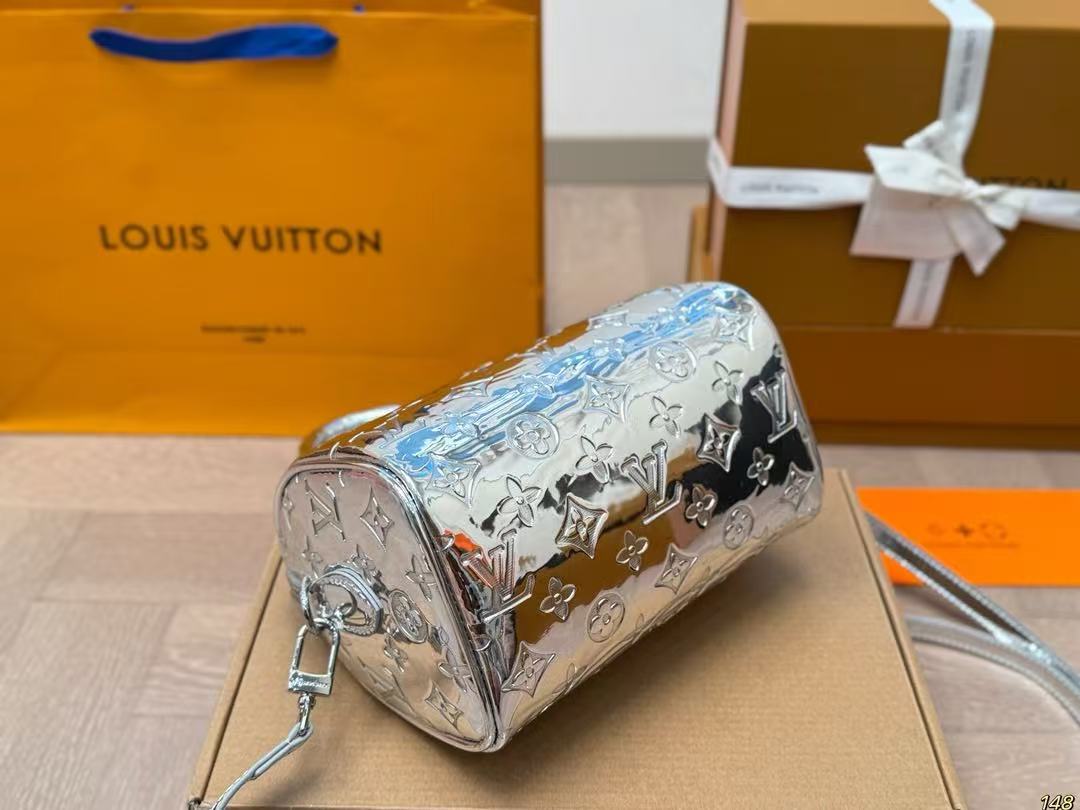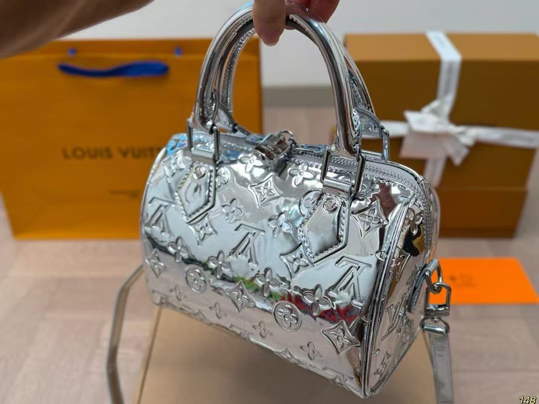 Louis Vuitton speedy silver patent leather bag