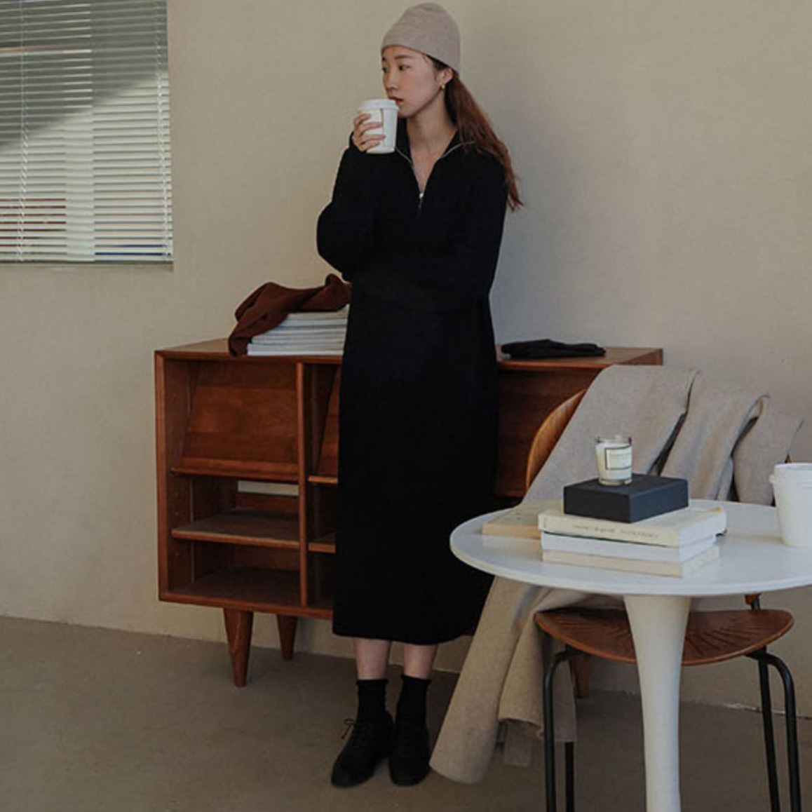 Ladies' Minimalist zipper woolen dress
