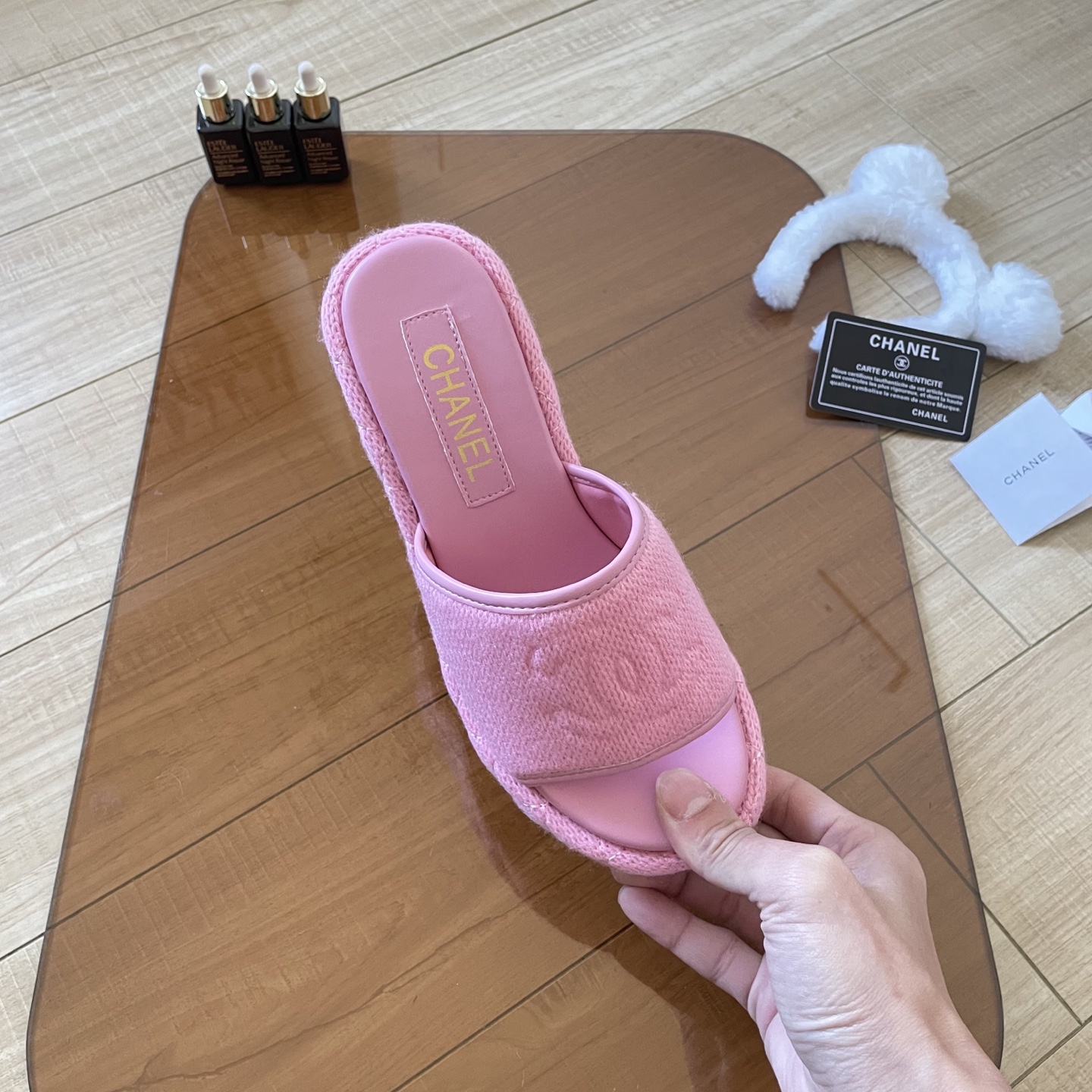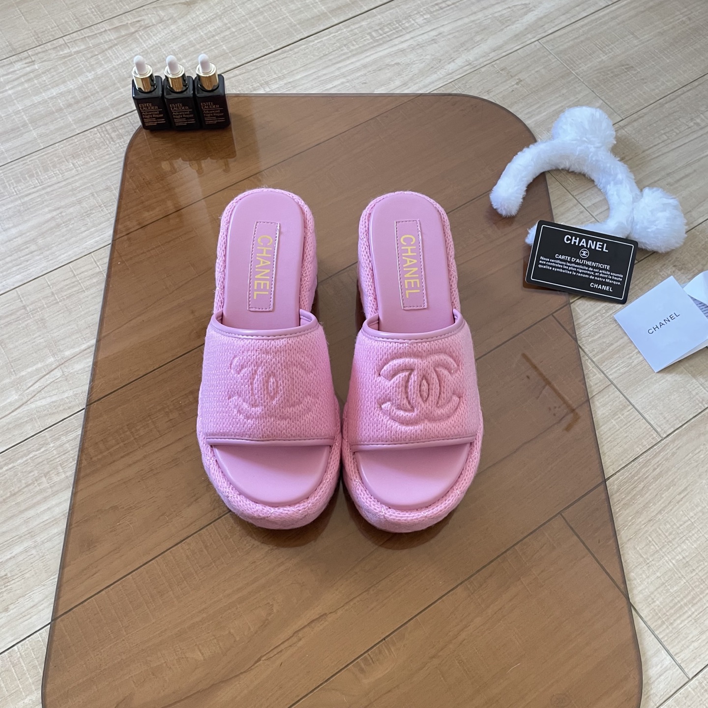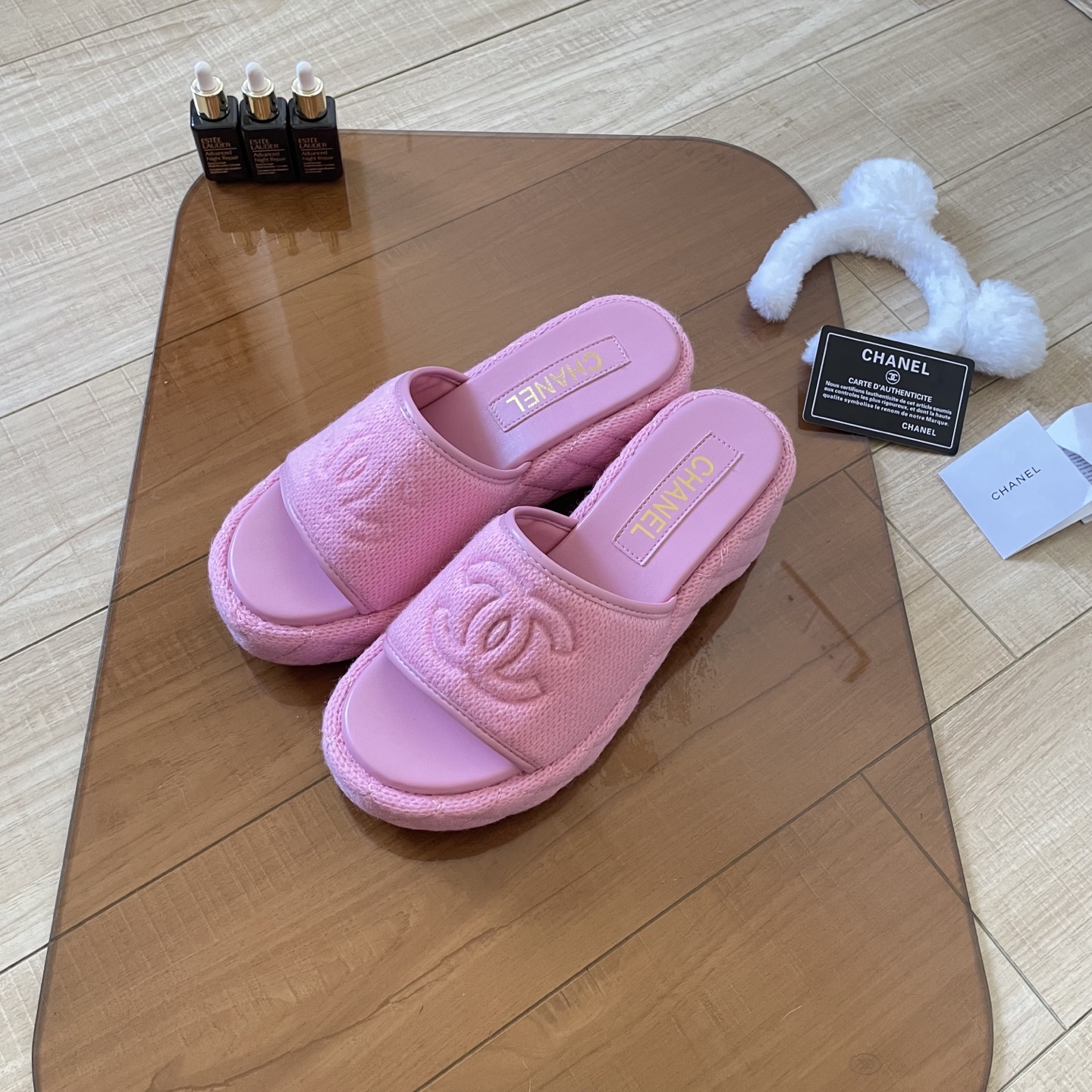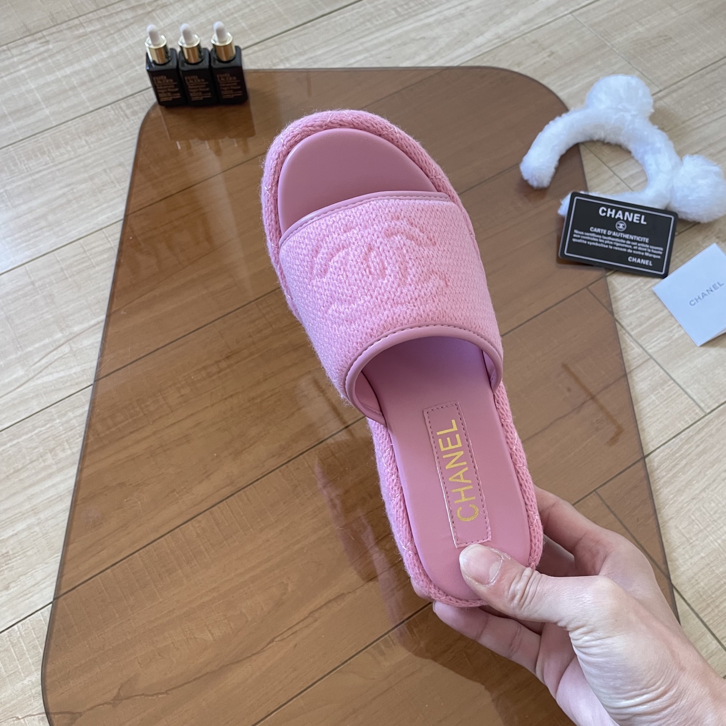 Chanel 25SS knitted thick-soled slippers