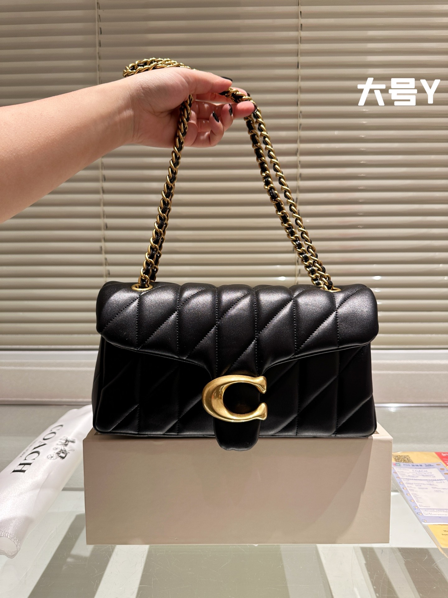 Coach All Black chain Otabby crossbody bag